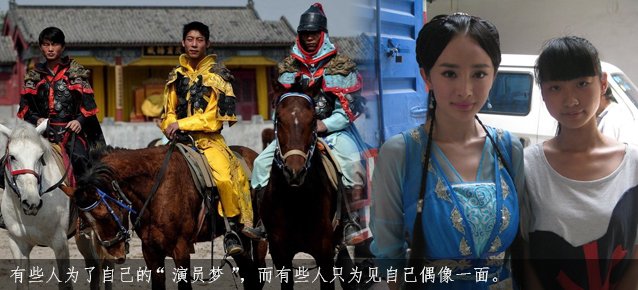 横店每年群众演员的流动人口达20万,每个都怀揣着一个将来能出名的梦想,每个人都希望自己可以成为第二个“王宝强”。但是现实总是残酷的。“群特和特约演员都有身高要求,女生要求162公分以上,男生要求175公分以上,身高越高越容易被导演相中,而且形象一定要好,除非你畸形到独一无二!”卢旭告诉记者,“但是横店形象好的人也多,所以都得跟导演搞好关系。很多男生就会偷偷给副导演回扣或者请他们吃饭。”
